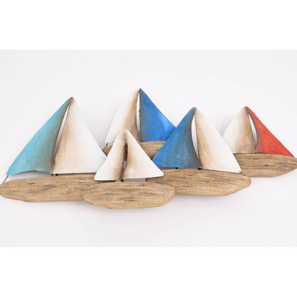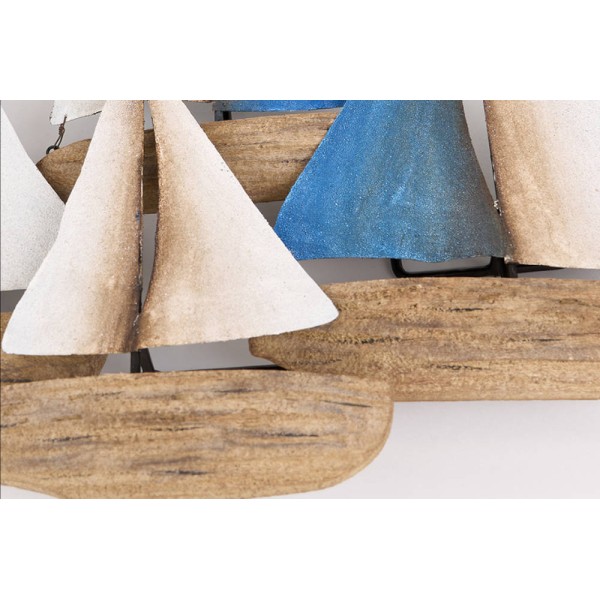 Wanddekoration in Segelbooten Form, handgefertigt aus Holz und Stahl.