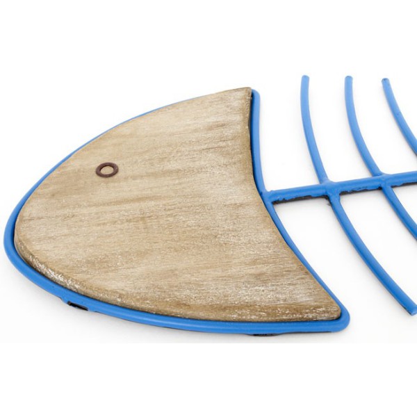 Dekorativer Wandfisch, handgefertigt aus Stahl und Holz.