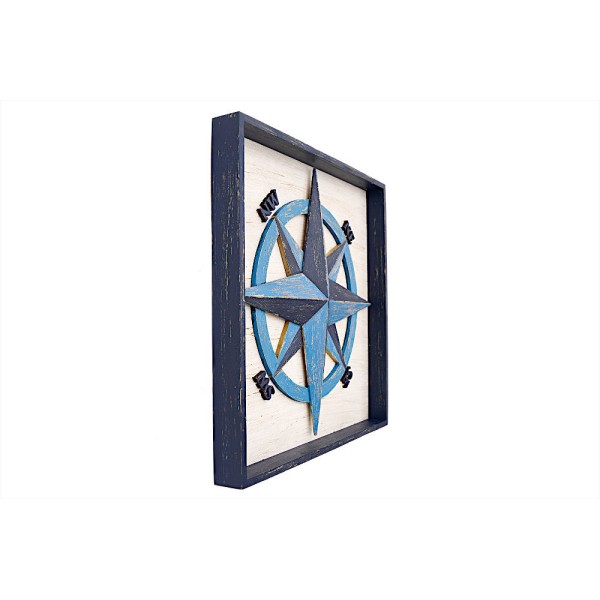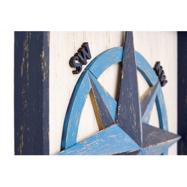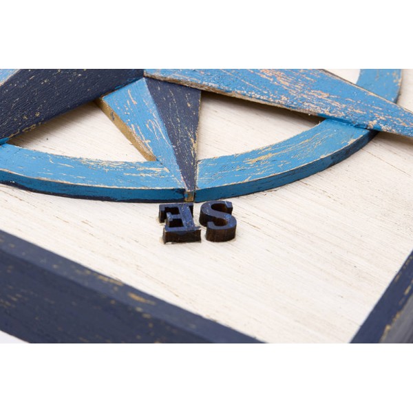 Seedekor-Bild aus Holz. Auf dem Gemälde sticht eine wunderschöne Windrose hervor.