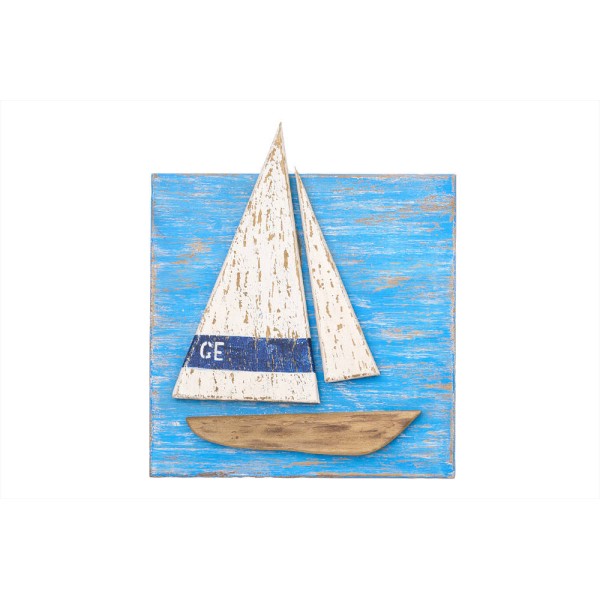 Set aus 3 dekorativen Marinegemälden aus Holz. Drei wunderschöne Segelboote zur Heimdekoration.