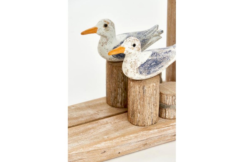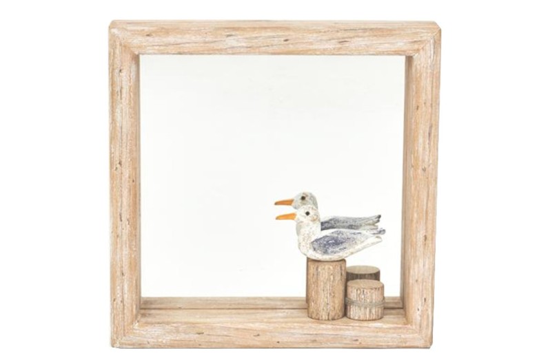 Spiegel mit einem handgefertigten Rahmen aus Naturholz, in den ein wunderschöner Vogel integriert ist.