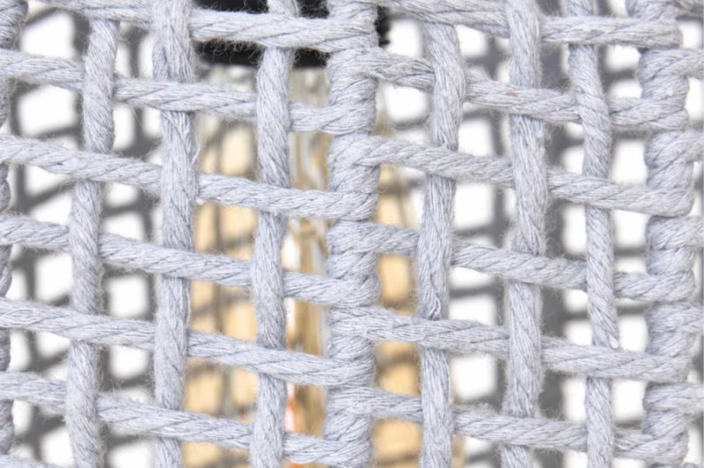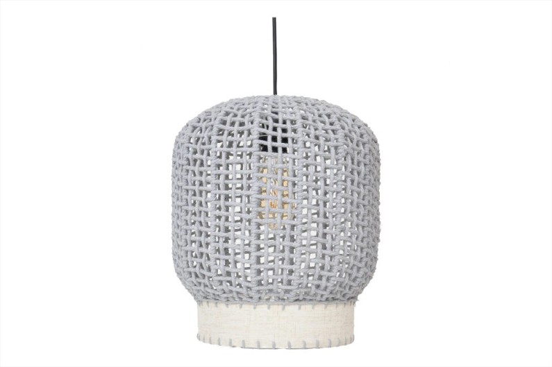 Stilvolle Deckenleuchte in Form eines Netzes aus Baumwolle.