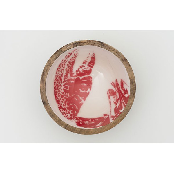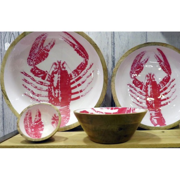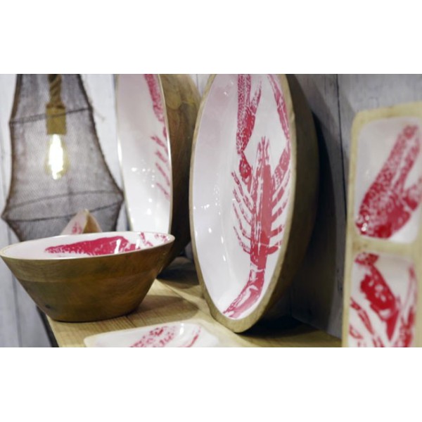 Schüssel aus emailliertem Holz mit Hummer gedruckt.