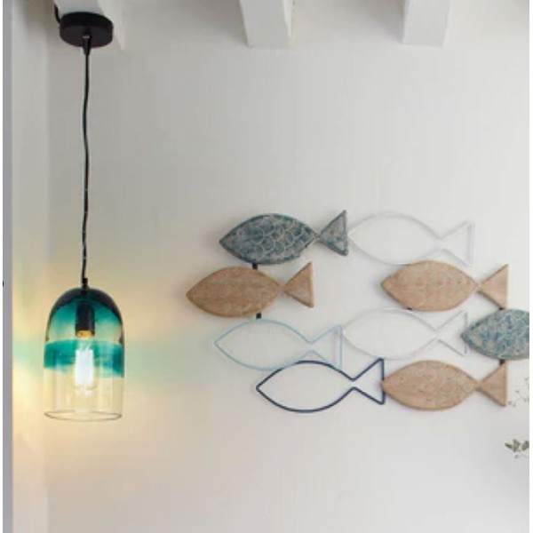 Glaslampe mit Farbverlauf, die von der Decke hängt.
