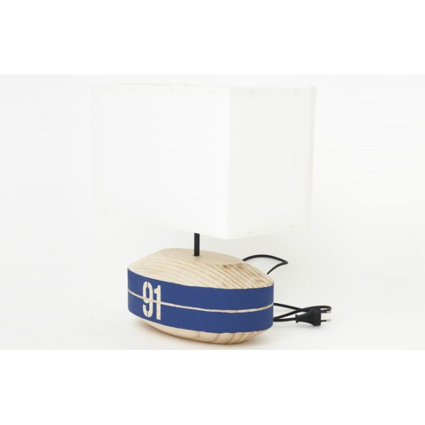 Tischlampe aus Holzbojen mit Lampenschirm aus durchscheinend Stoff. Es funktioniert mit 220V. E27