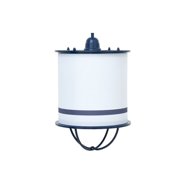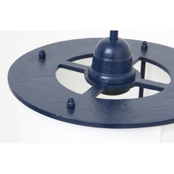 Blaue Seedekor-Lampe in veraltetem Messing mit durchleuchtendem Lampenschirm. Sie funktioniert mit 220V. Glühbirne E27.
