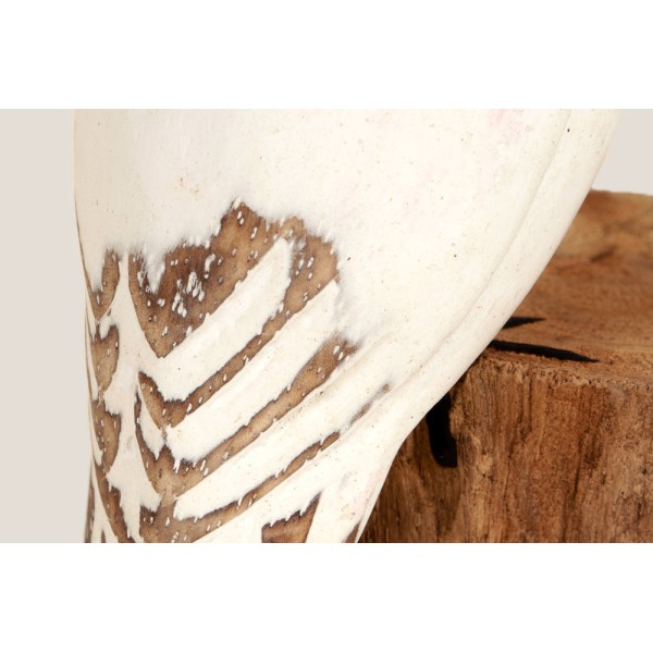 Vogel aus Albasia-Holz, Art „Eule“, mit einem Sockel aus Holzstamm. Handgefertigt in Indonesien, Einzelstück.