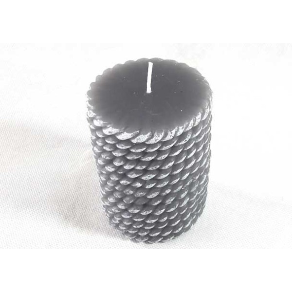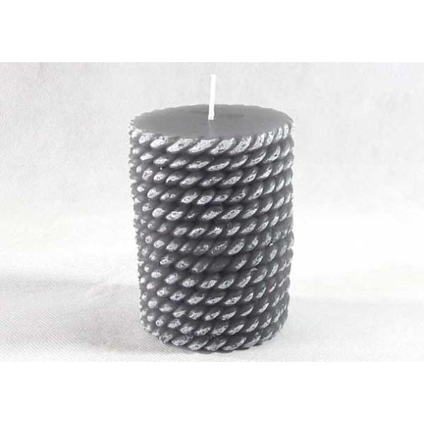 Set aus 2 Wachskerzen in Knäuelform, schwarz und grau.