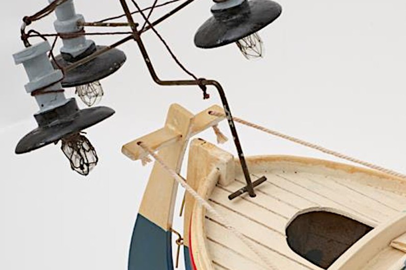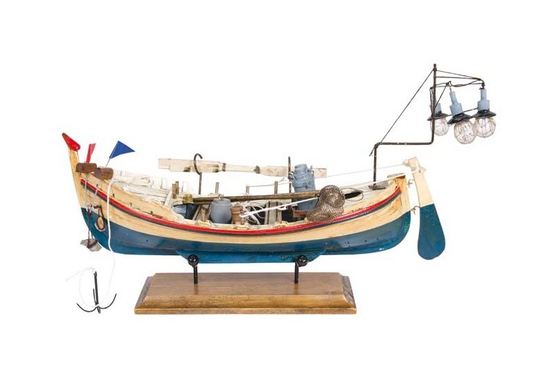 Schönes Boot mit Lichter Seedekor-Modell, komplett montiert, von einem Ruderboot, ideal als Geschenk, das Wohnung und Büro dekoriert. Man sucht keine genaue Reproduktion, sondern den dekorativen Wert. Hochwertige Konstruktion mit edlen Materialien, genau bis auf die kleinsten Details.