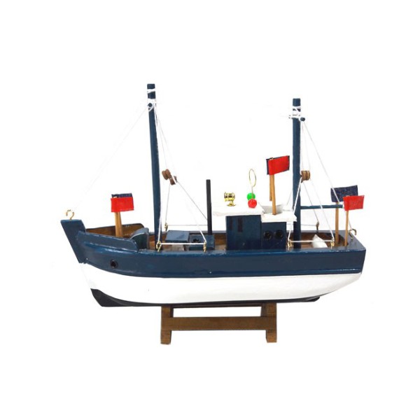 Schönes Meeresfrucht Fischerboot Seedekor-Modell, komplett montiert, von einem Ruderboot, ideal als Geschenk, das Wohnung und Büro dekoriert. Man sucht keine genaue Reproduktion, sondern den dekorativen Wert. Hochwertige Konstruktion mit edlen Materialien, genau bis auf die kleinsten Details.