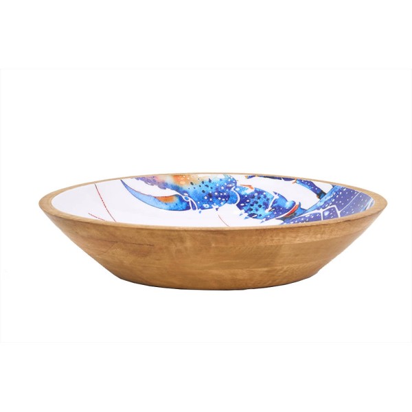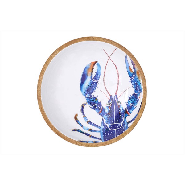 Schale aus hochwertigem Teeholz, emailliert und mit einem Hummer-Aufdruck auf der Innenseite. Ideal, um Obst in der Mitte des Tisches zu platzieren.