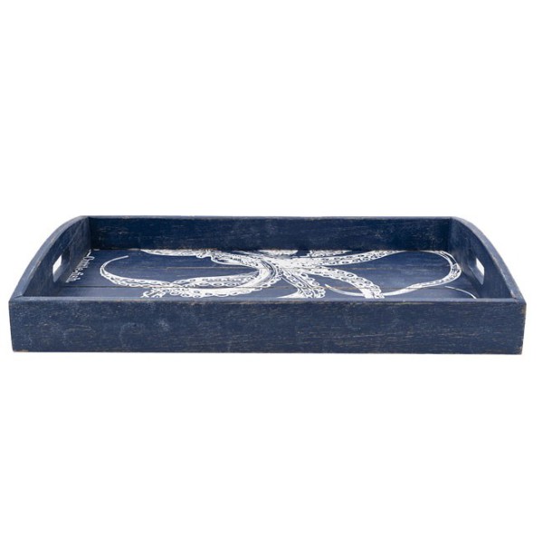 RechteckigTablett, mit einem Tintenfisch verziert, sehr leicht und einfach zu transportieren. Hergestellt aus Holz.