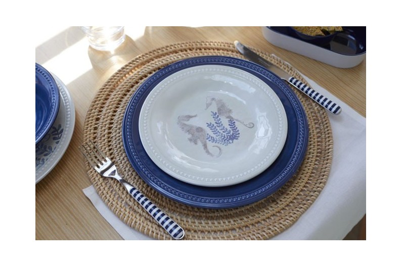 Set von 6 Stücke flacher Teller, wunderschönes Design, in Blau.
