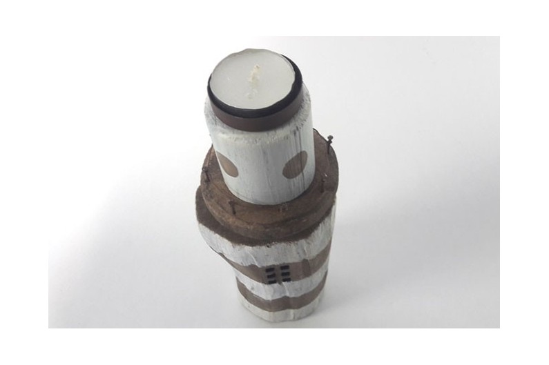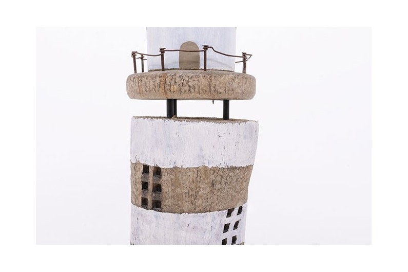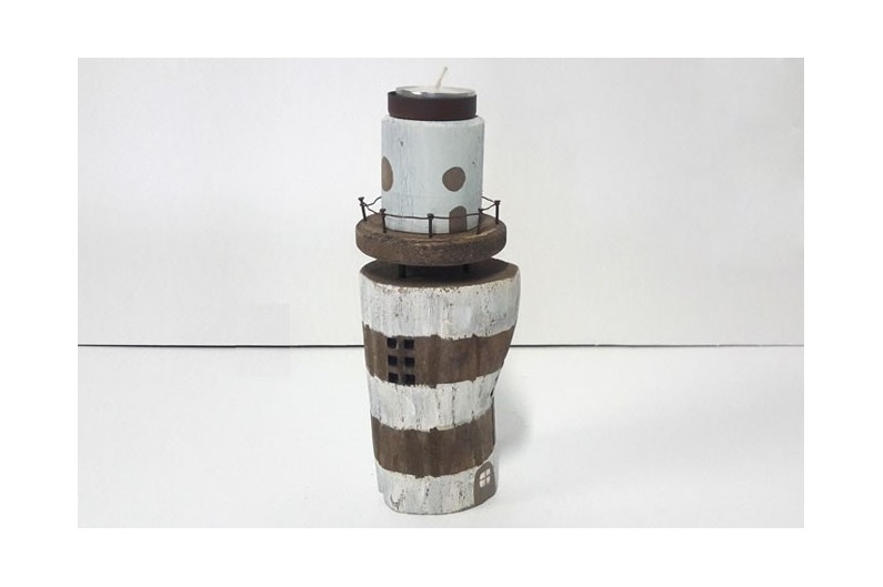Leuchtturm geformte Kerzenhalter aus Holz.