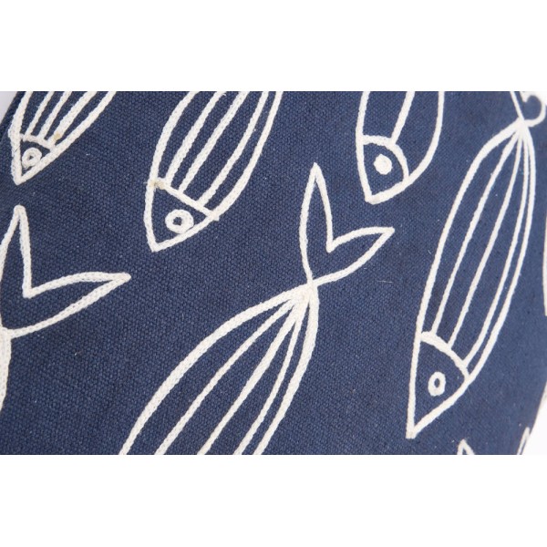Hochwertiges Baumwollkissen mit einem Fischschwarm im Hintergrund.
