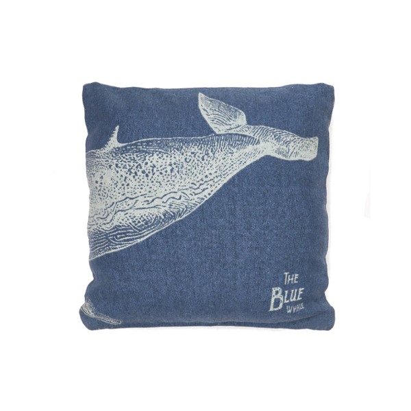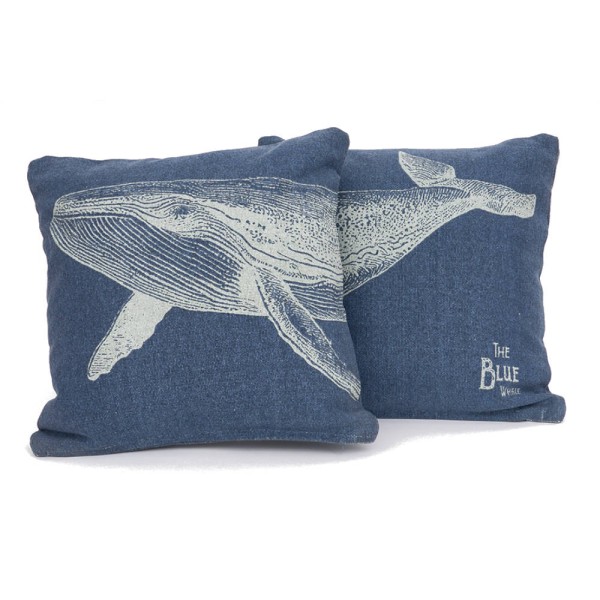 Set mit 2 hochwertigen Kissen mit bedrucktem Wal aus Baumwolle.
