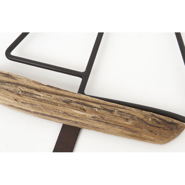 Wandaufhänger in Segelbootsform, handgefertigt aus Holz und Stahl.