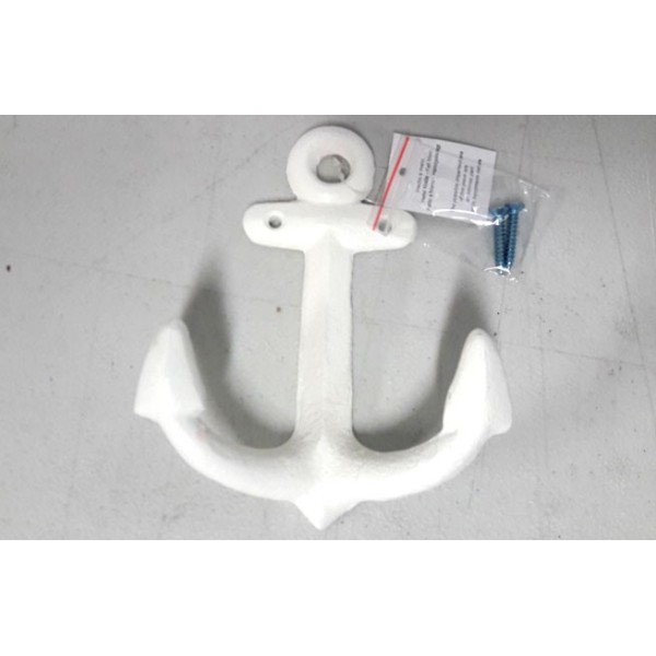 Set von 6 Gusseisen -Aufhänger in Ankerform und weißer Farbe.