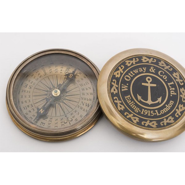 Alter goldener Kompass mit Ledertasche. Geschichte Kompass