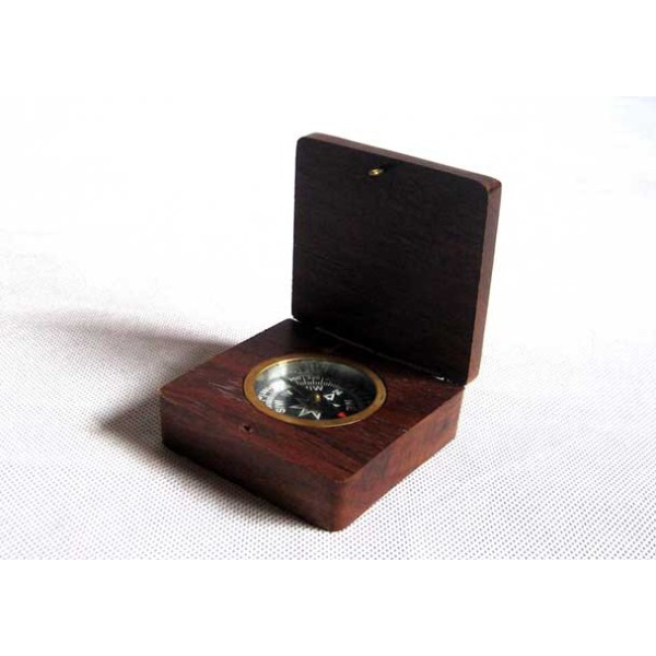 Kompass in Holzkiste eingesetzt aus hochwertigem Holz in Grösse von 6,5 x 6,5 x 2,5 cm. Ideal als Erinnerung an Konventionen oder Besuche oder als Firmengeschenk . Geschichte Kompass