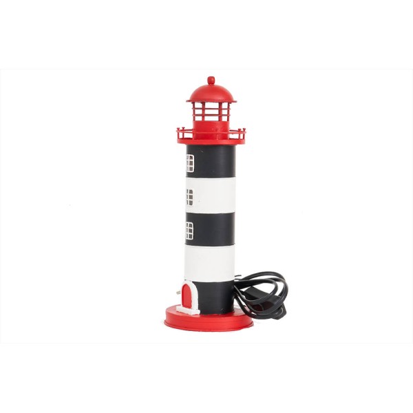 Handgefertigter Marine-Leuchtturm in sehr hellen Farben, der mit 220 V betrieben wird. für das Büro, das einen echten Leuchtturm nachbildet. Sehr dekorativ und nautisch