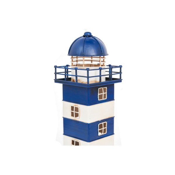 Marine Leuchtturm von Hand mit hellen Farben, die mit Led arbeitet. Schönes Seedekor. Aus Metall gemacht.