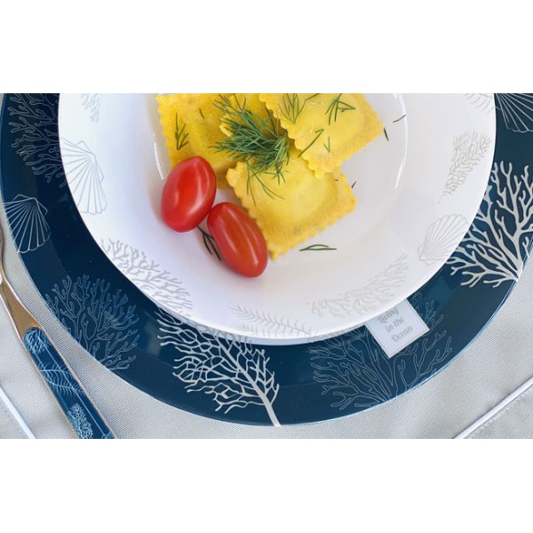 Set von 6 Stücke flacher Teller, wunderschönes Design, mit weißen und blauen Hintergrund.