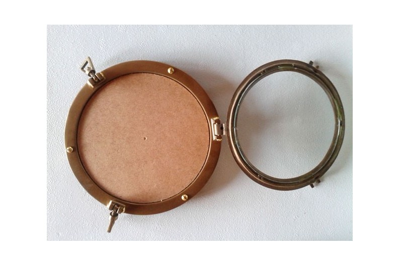Bullauge als Fotorahmen aus veraltetem Messing.