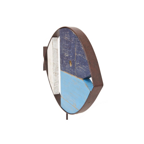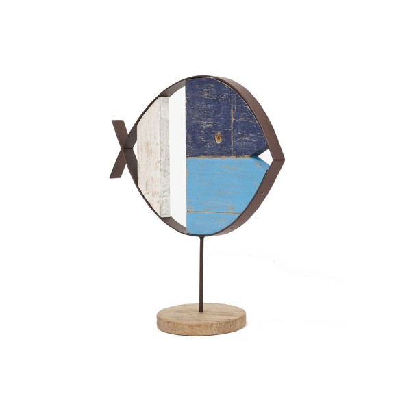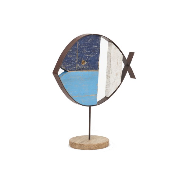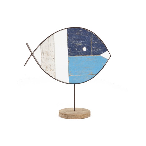 Tischfigur eines Fisches, handgefertigt aus Holz und Stahl.
