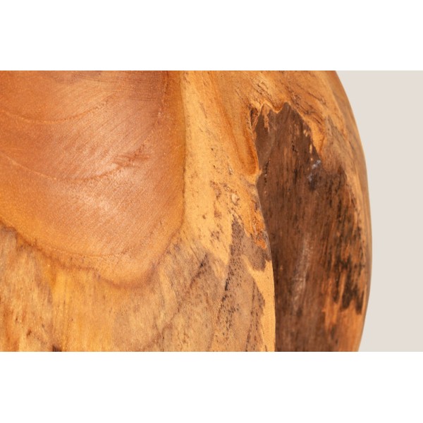 Tischlampe aus Teakholz mit Schirm aus Textilfasern. Handgefertigt in Indonesien.