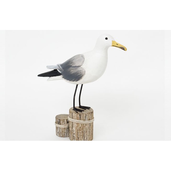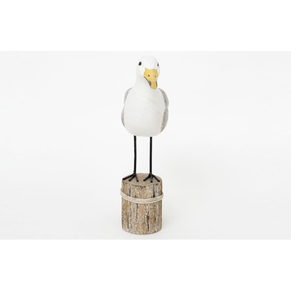 Elegante Vogelfigur zur Meeresdekoration, Seevogelnachbildung. Handgefertigt aus lackiertem Holz.