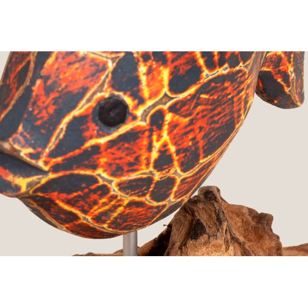 Kleiner rot-brauner Fisch aus Albasiaholz mit rustikalem Fuß. Handgefertigt in Indonesien.