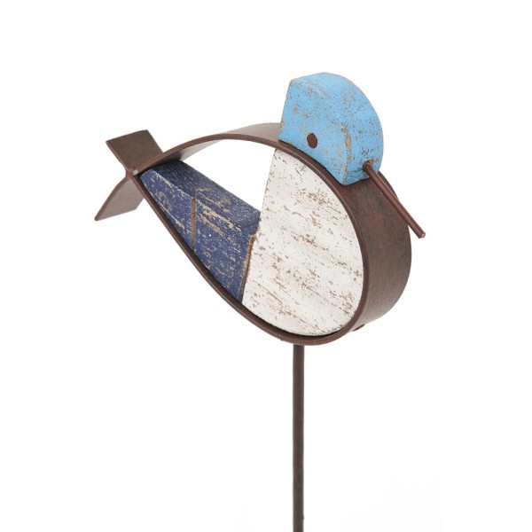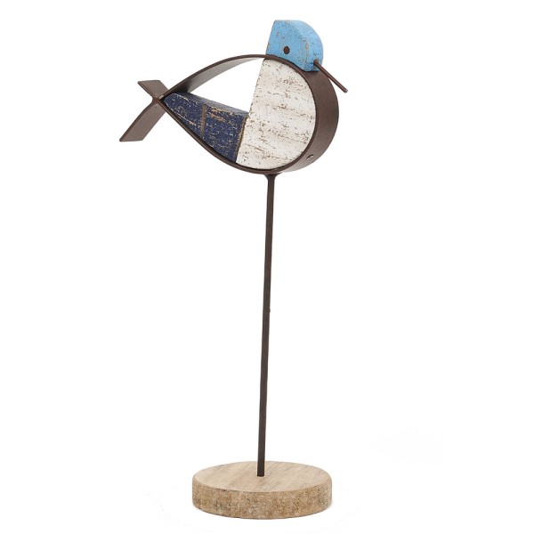 Elegante Vogelfigur zur maritimen Dekoration, Nachbildung eines mit den Flügeln schlagenden Seevogels. Handgefertigt aus lackiertem Holz und Stahl.