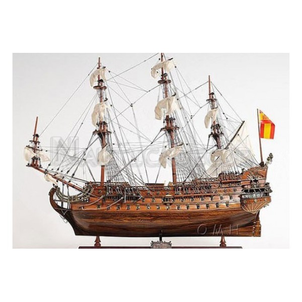 Die San Felipe (1690), war einer der schönsten spanischen Galeonen aus dem 17. Jahrhundert und eines der ersten Schiffe von drei Brücken, bewaffnet mit 100 Kanonen, aber mit einem eleganten Design. Dekoratives maßstabgetreues Modell mit hochwertiger Bearbeitung aus Holz, von Hand lackiert und komplett montiert .Verpackung in Einzel- Box.
