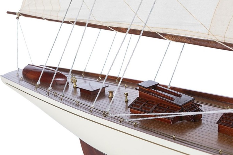 The Rainbow (1934), wurde nach den internationalen Standards der Klasse J gebaut und von Marine-Ingenieur William Starling Burgess entworfen. Dieses Boot wurde in Rhode Island (USA) entworfen und hergestellt, um den America 's Cup gegen die "Endeavour" verteidigen. Scale-Modell dekorative handgefertigte Holz gefertigt. Verpackung: Mast demontiert . Boot geliefert in Einzelboxen.