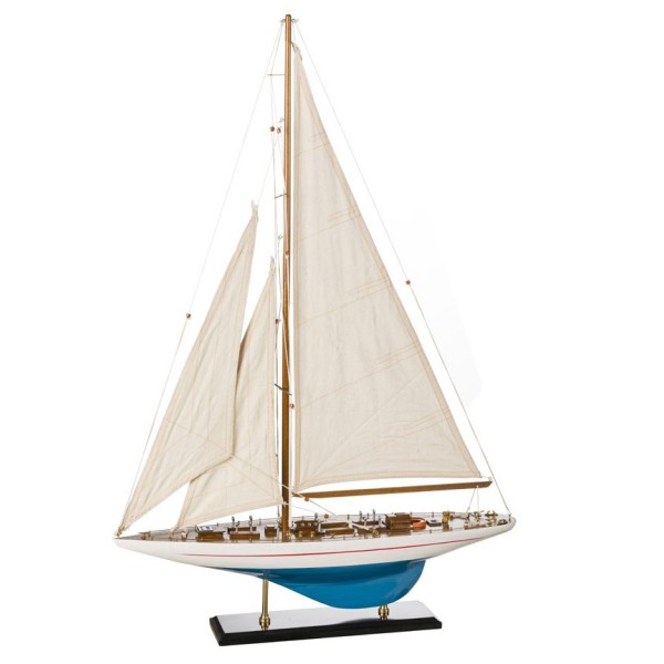 Schönes Modell segelboot "Shamrock" komplett montiert, das Wohnung und Büro dekoriert, ein unvergessliches Geschenk von Dauer. Hochwertige Konstruktion mit edlen Materialien, genau bis auf die kleinsten Details. Messen Sie das Regal oder Platz, wo Sie , dieses schöne Modell setzen wollen, da diese Modelle größer sind , als sie erscheinen.