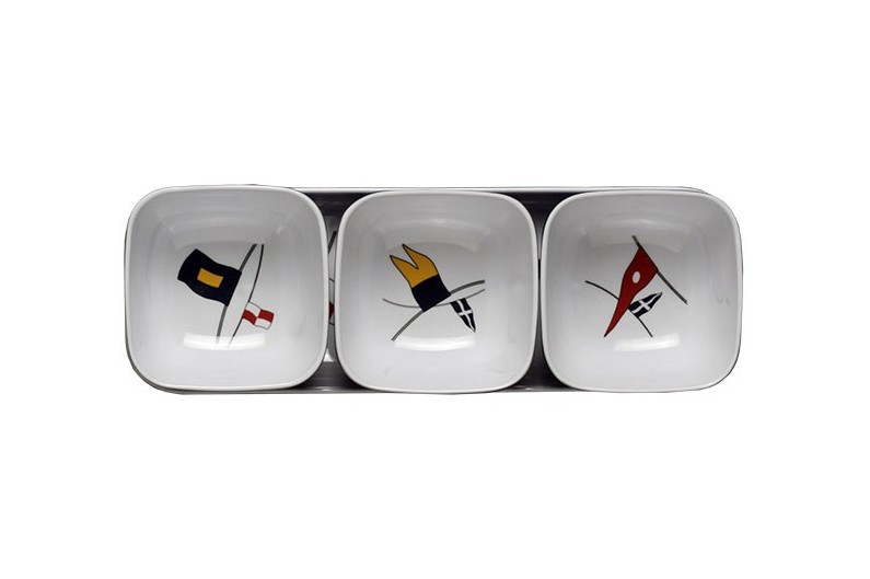 Set von 3 Stücke de bowls per a snacks més safata, wunderschönes Design, mit weißen Hintergrund und Flaggen.