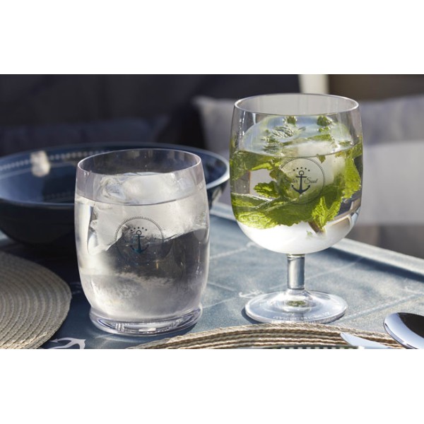 Ecozen ist ein neues High-End-Material, wahrscheinlich das beste für die Herstellung von synthetischen Glaswaren, extrem stoßfest und mit dem Aussehen von Glas. Es ist spülmaschinenfest und sehr langlebig, ohne das Auftreten von Kratzern oder Stumpfheit.