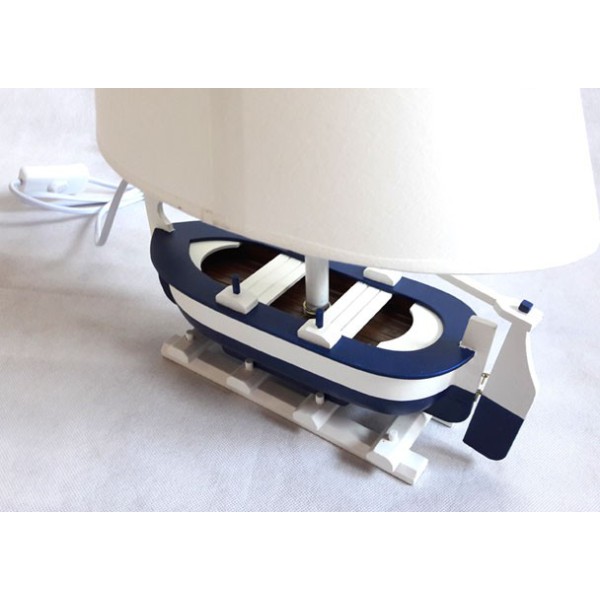 Bootlampe. Eigenartige nautische Lampe, aus einem Bootsrumpf hergestellt, aus dem eine Kerze ragt. Von Hand hergestellt und bemalt. Wird mit dem Bildschirm geliefert.