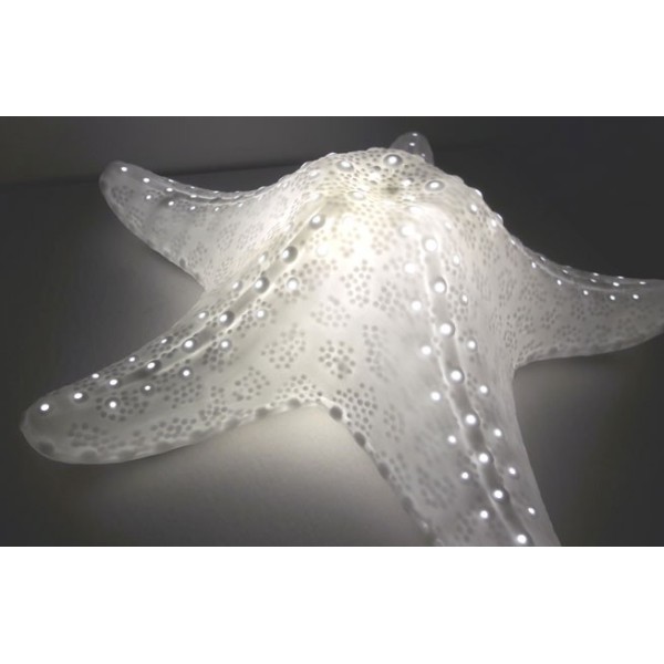 Seestern-Lampe aus durchscheinendem Porzellan. Schöne Lampe, die ein warmes Licht gibt, ideal für eine gemütliche und entspannende Stimmung.