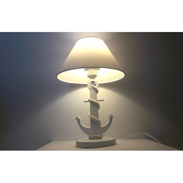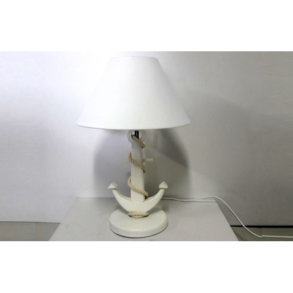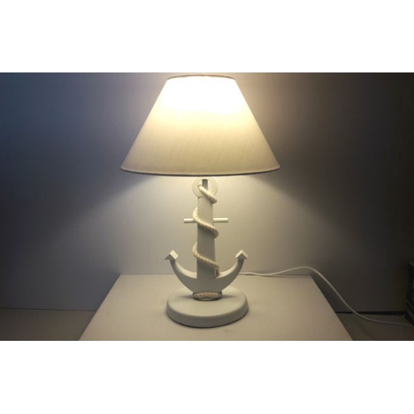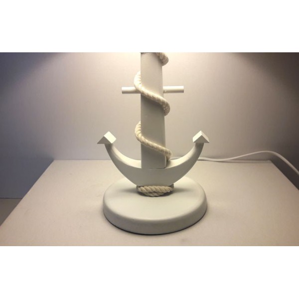 Originale Lampe mit Anker als Fussform. Der Marine-Ankerfuß besteht aus Kiefernholz. Das Seil ist aus Baumwolle.