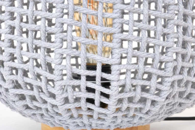 Tischleuchte mit netzartigem Design aus hochwertiger Baumwolle und Holz.