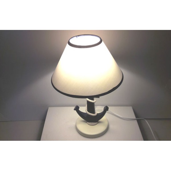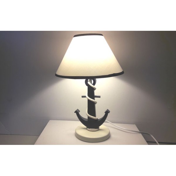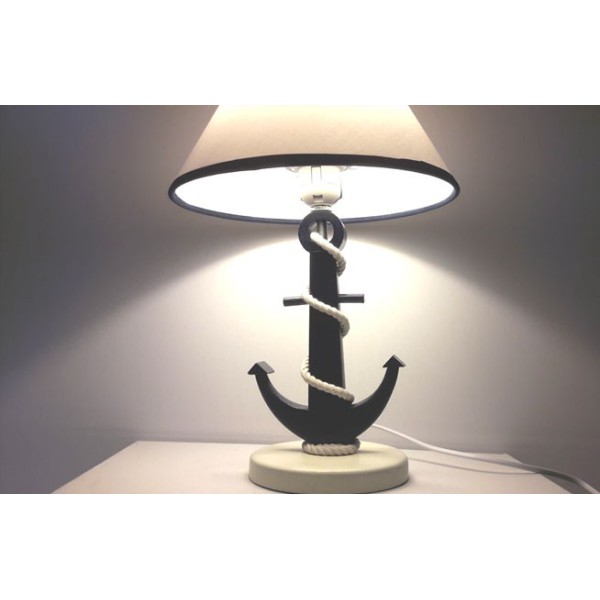 Originale Lampe mit Anker als Fussform. Der Marine-Ankerfuß besteht aus Kiefernholz. Das Seil ist aus Baumwolle.