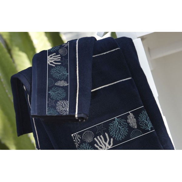 Set von 3 Handtuch, sehr angenehm, in blauen-Tönen.