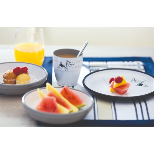 Set von 16 Stücke, Inhalt: 4 flache teller, 4 Suppenteller, 4 Dessertteller, 4 Tassen und transporttasche.