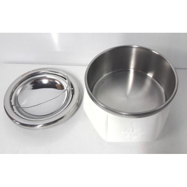 Weisser Aschenbecher fest gegen Wind und Schiffsbewegungen.